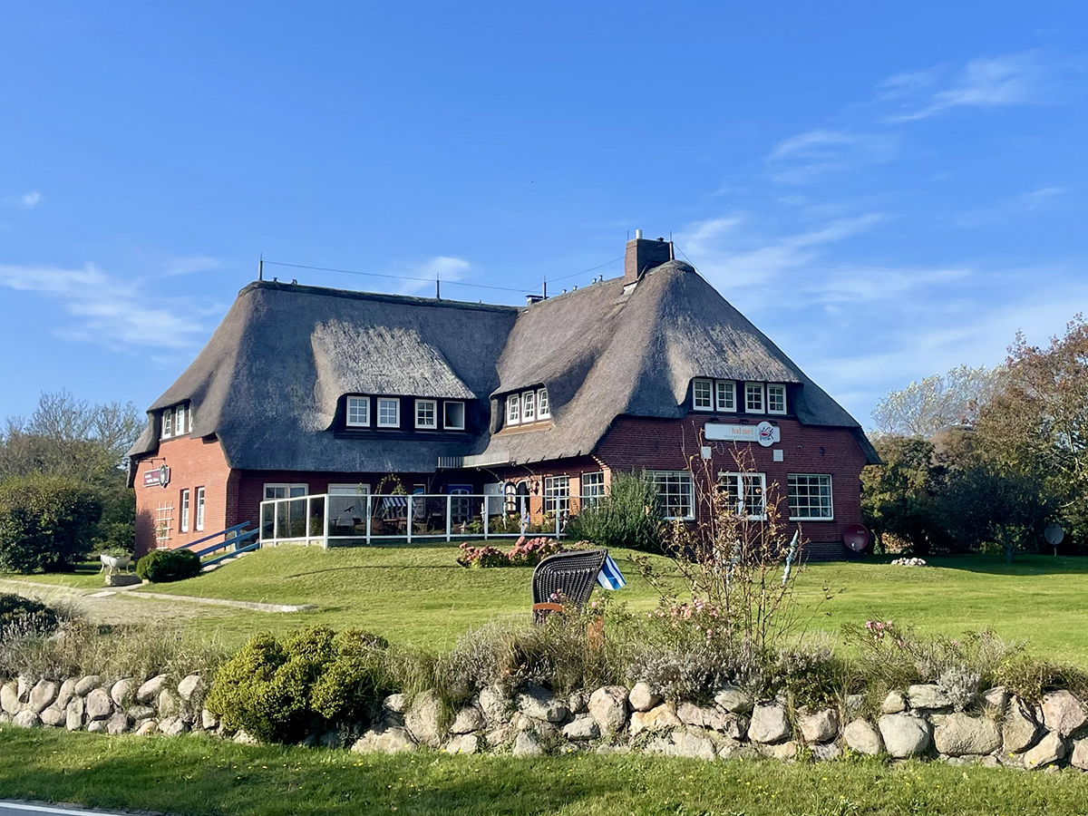Das Inselhotel Kapitän Tadsen wurde 1979 im kleinsten Inseldorf, Steenodde errichtet. Steenodde als Kapitänsdorf besticht durch seine pittoresken Reetdachhäuser, einen eigenen kleinen Gezeitenstrand und eine ausgezeichnete Restauration. Das Hotel verfügt über einen romantischen Frühstücksraum mit Meerblick sowie eine Außenanlage mit Ruheplatz und kleinem Teich.